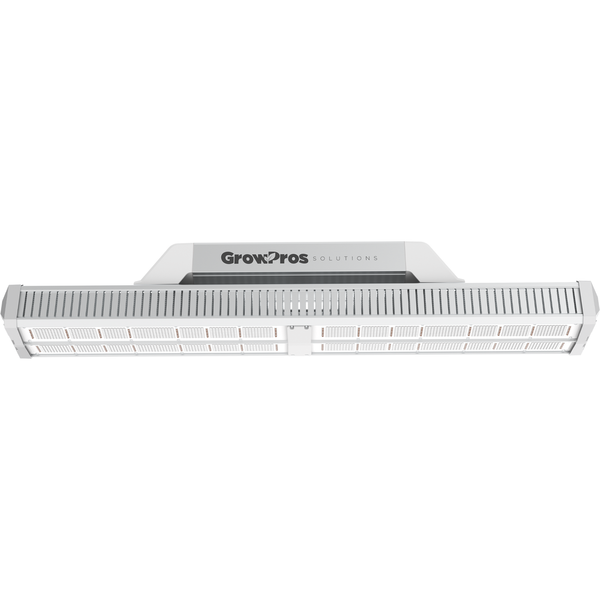 Grow Pros Solutions GH800 Greenhouse Grow Light or high bay grow light is expertly engineered for supplemental greenhouse grow lighting system. Featuring a sleek, slim profile that minimizes shadowing, these high-efficiency fixtures deliver an impressive up to 2,400 µmol/s PPF, effectively illuminating expansive areas. Equipped with wireless two-channel spectrum control and seamlessly integrated with a wireless photo sensor, the GH800 enables automated daylight balancing. This ensures a consistent Daily Light Integral (DLI) while optimizing power usage for maximum energy efficiency.
